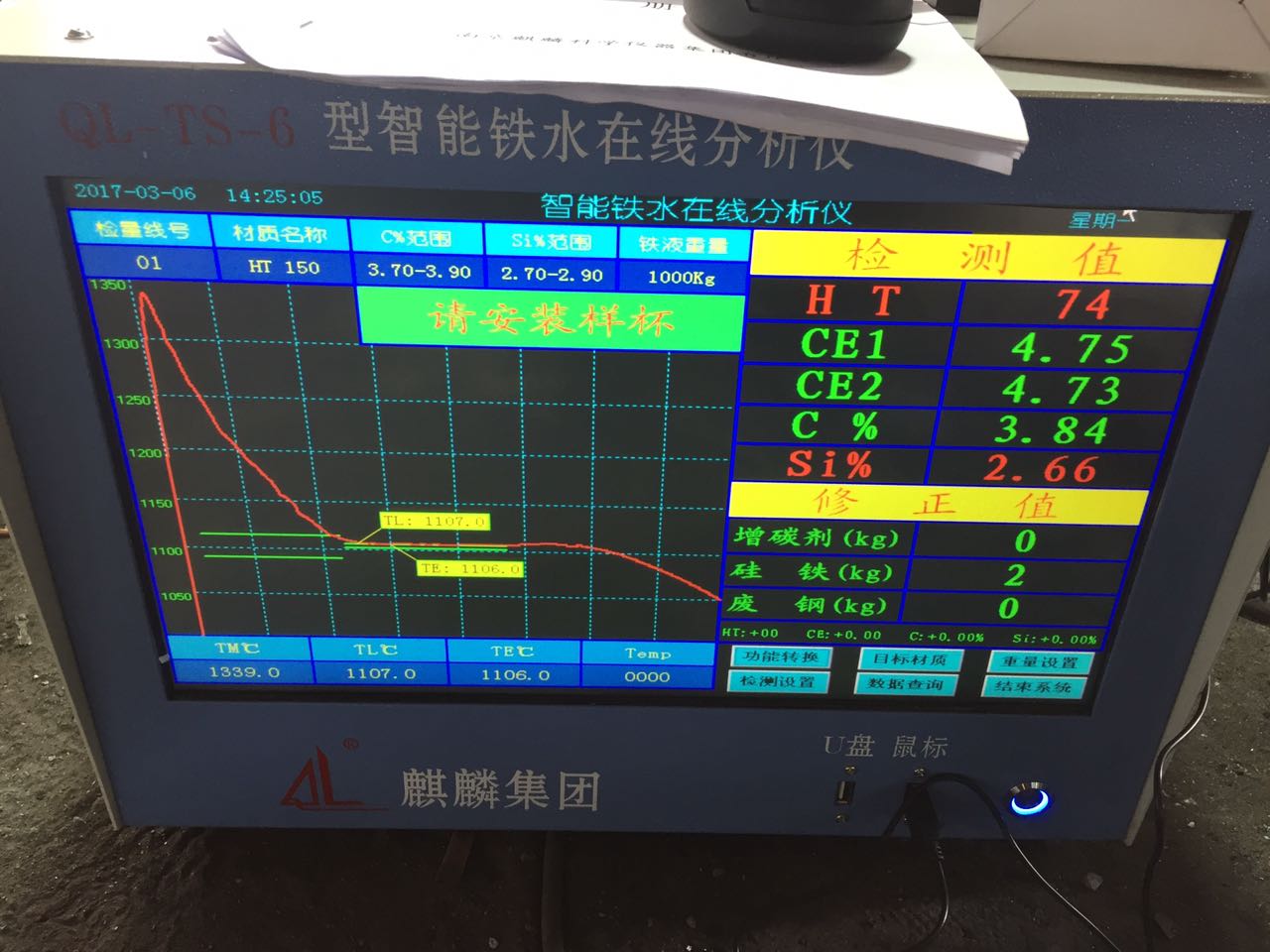 QL-TS-6型智能鐵水在線分析儀主要用于生鑄鐵,球鐵材料中碳、硅元素化學分析;